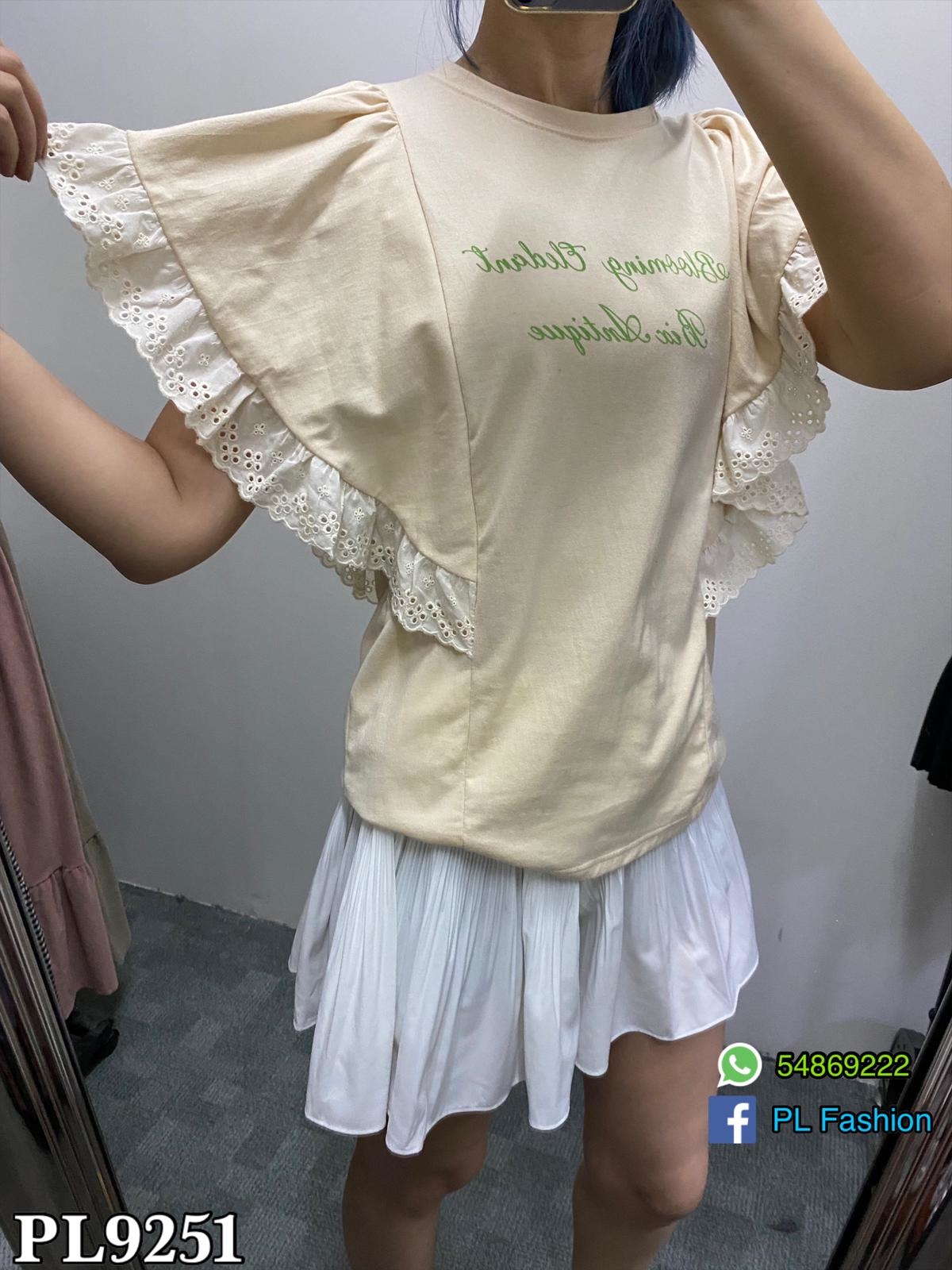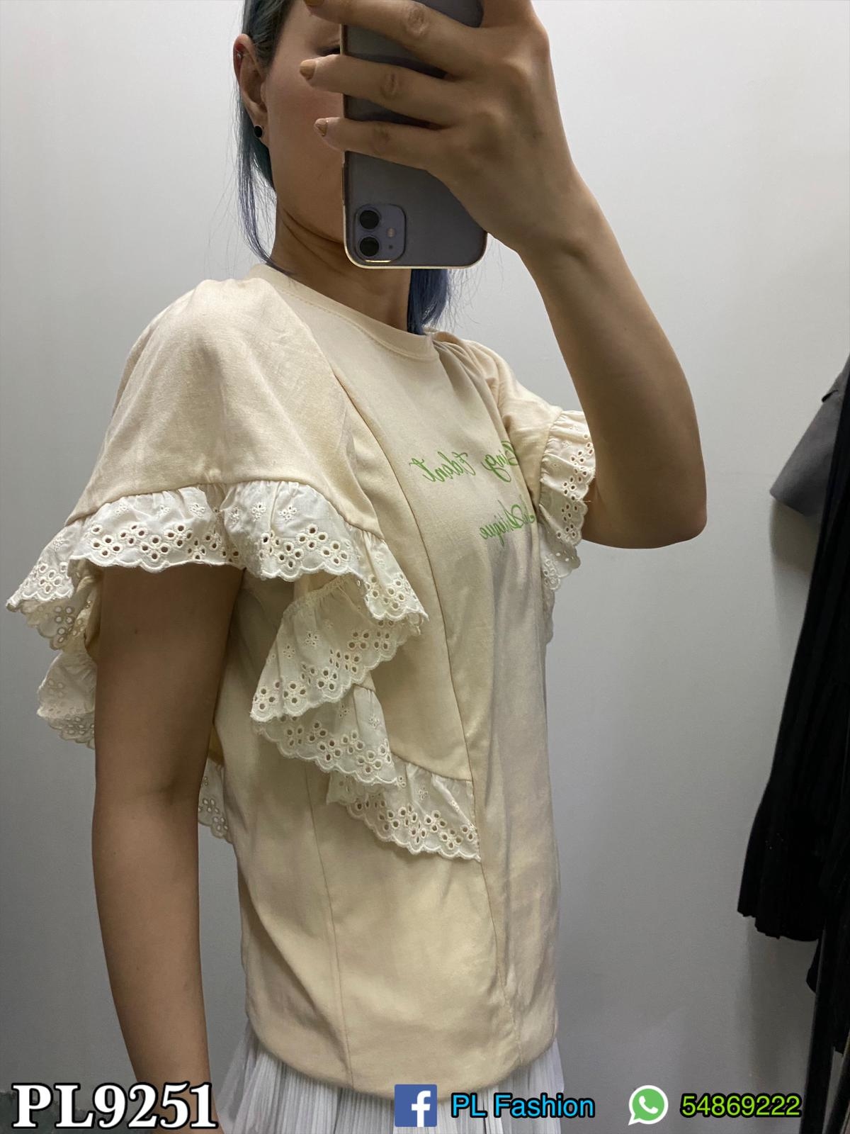 PL9251 顯瘦靚Lace邊荷葉袖Top✨$269   #F #綠#米