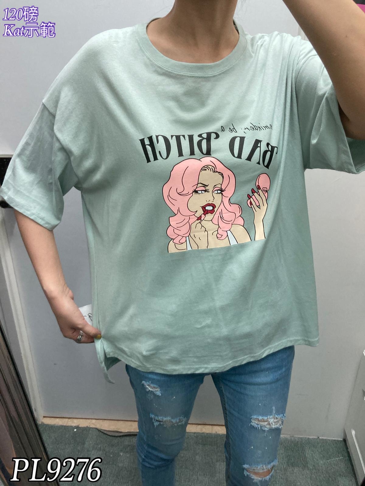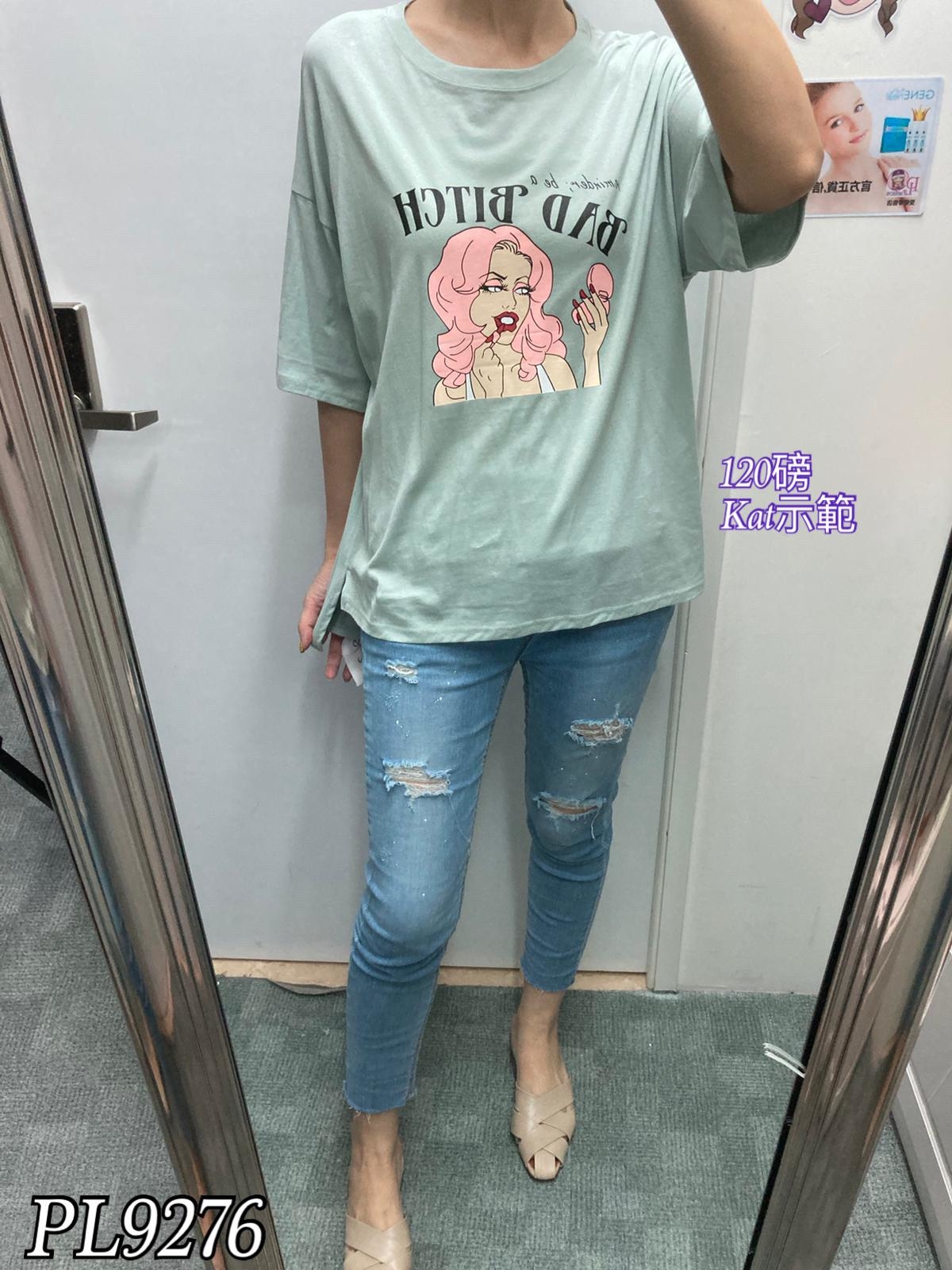 💜靚靚棉料Tee🌈印上塗唇膏女孩圖案無咁單調💕粉色頭髮拼落三隻色既衫都好突出❣️灰色 綠色 都係爆單顏色💥 小編卻私心卡其 實物好靚🥳🥳🥳