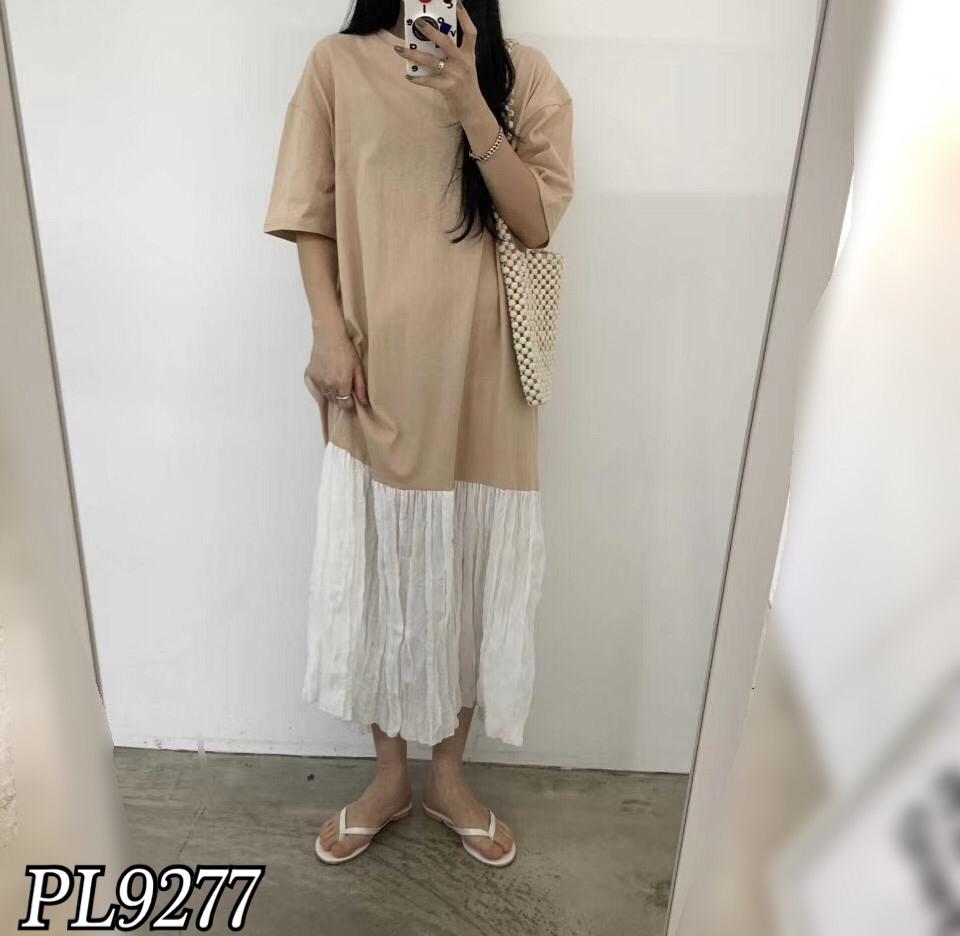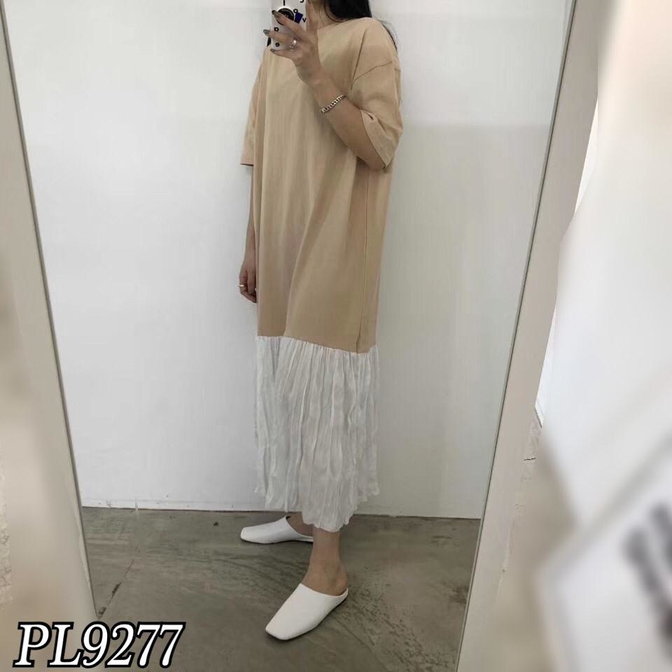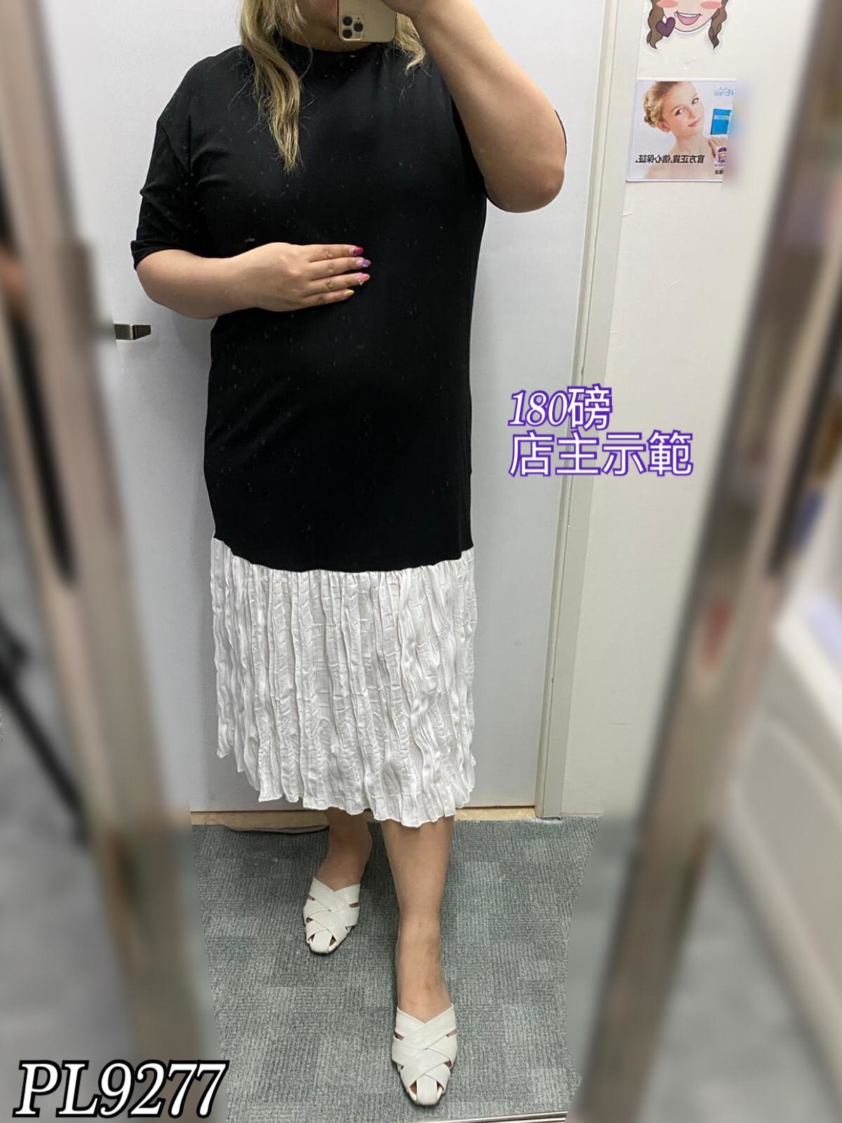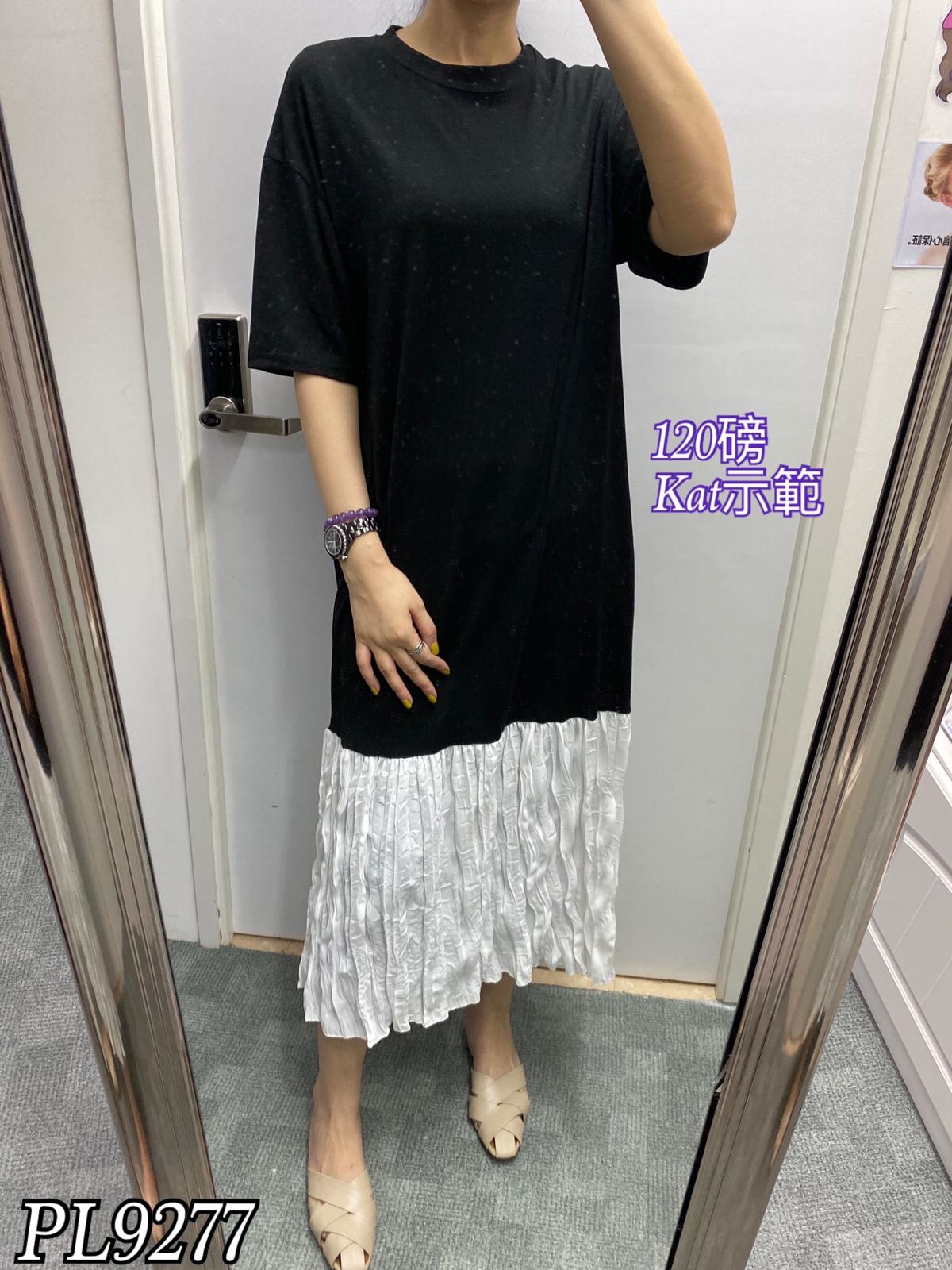 PL9277 拼雪紡皺紋布裙擺OPS #F #黑 $259