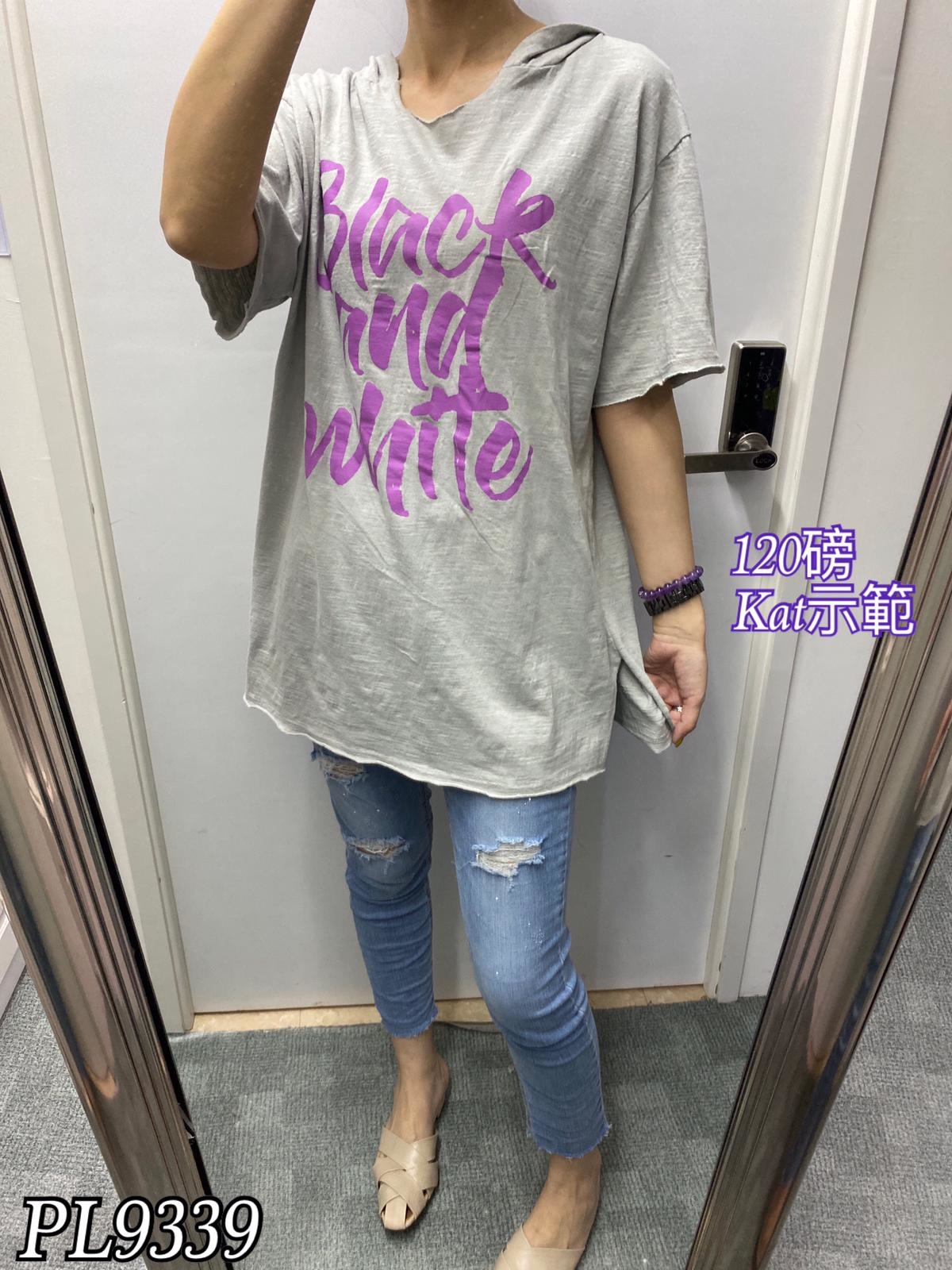 PL9339 有帽捲邊竹節棉Tee $209  #F #灰#白