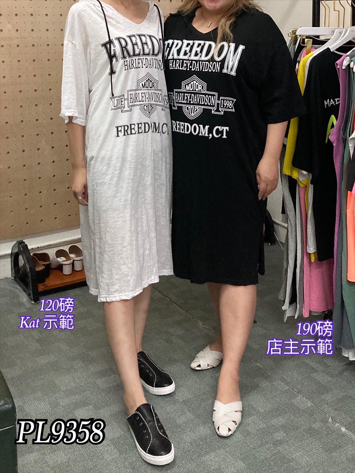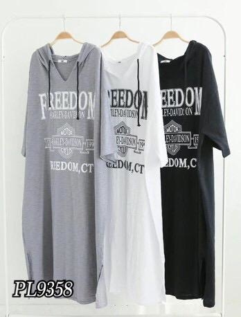 PL9358 Freedom大字有帽連身裙$219 #F #黑#白#灰