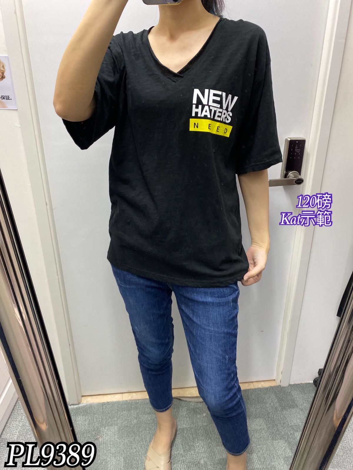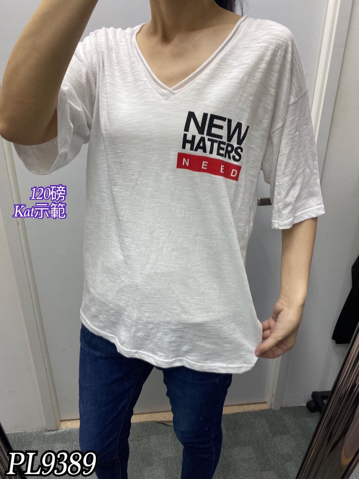 PL9389 V領new haters Tee$199 #F #黑#白#粉#綠