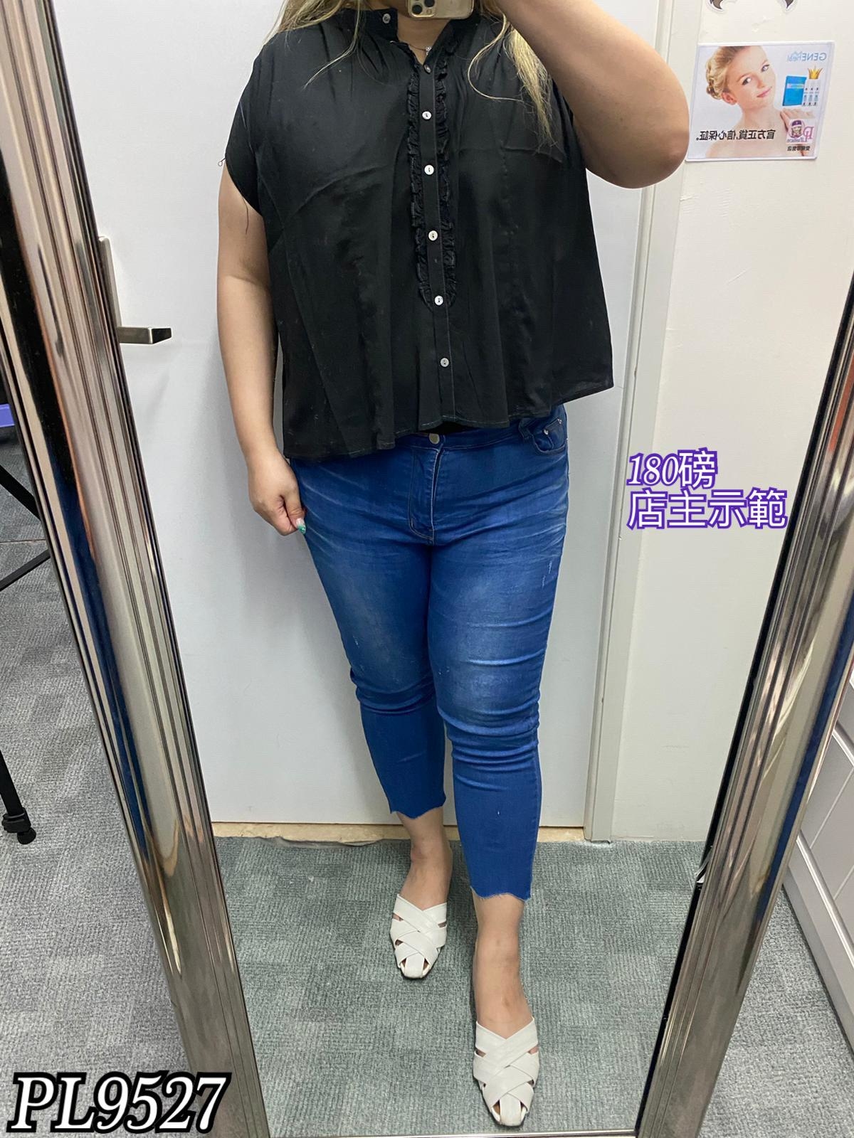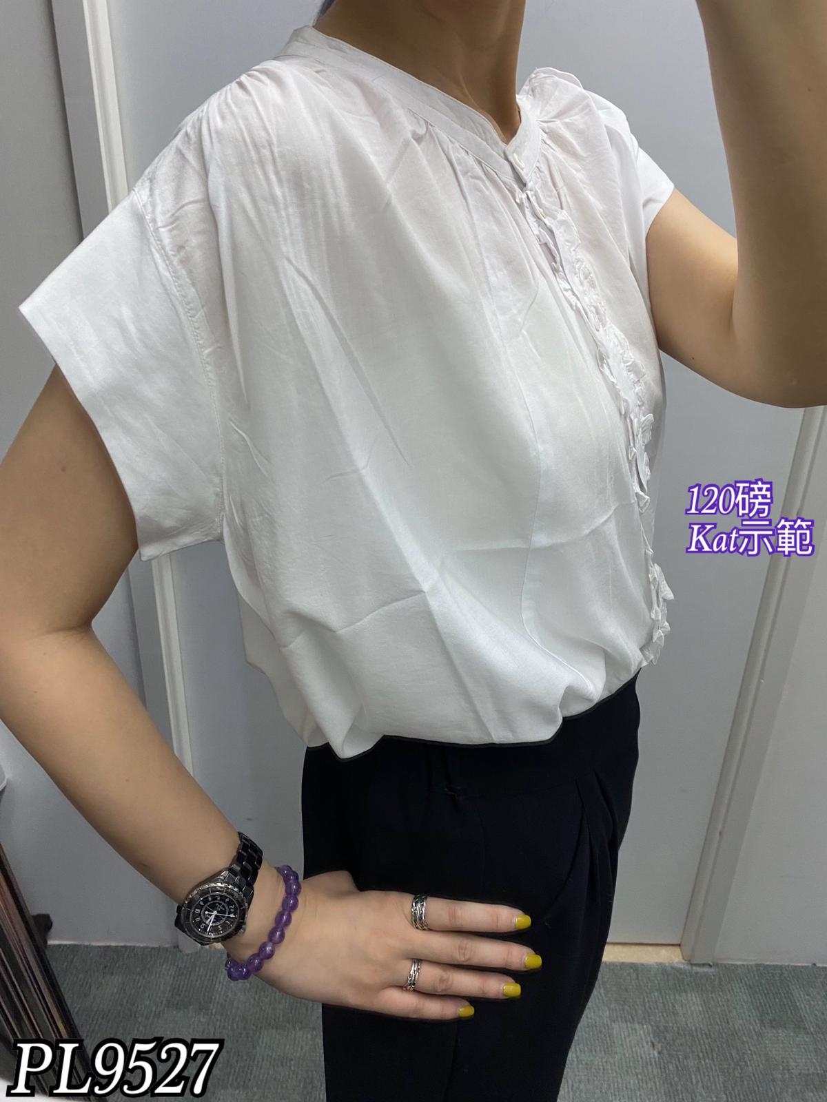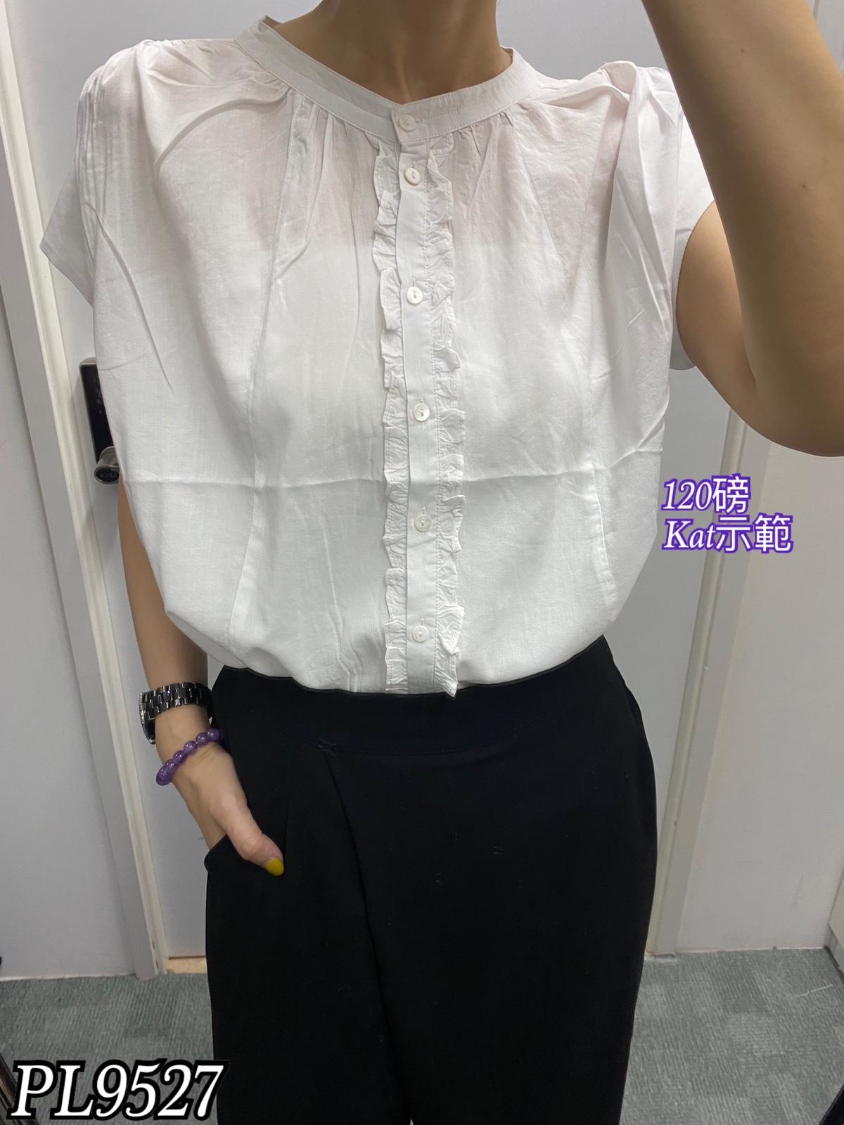 PL9527 全排扣兩著木耳邊上衣 $259#F #黑#白#杏
