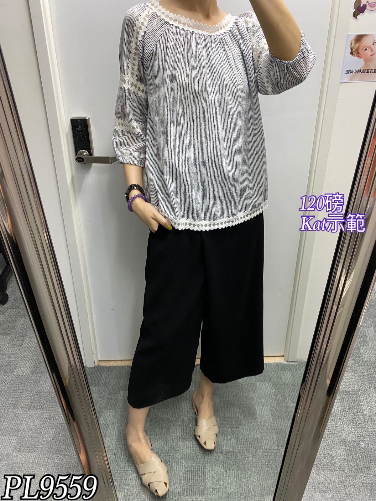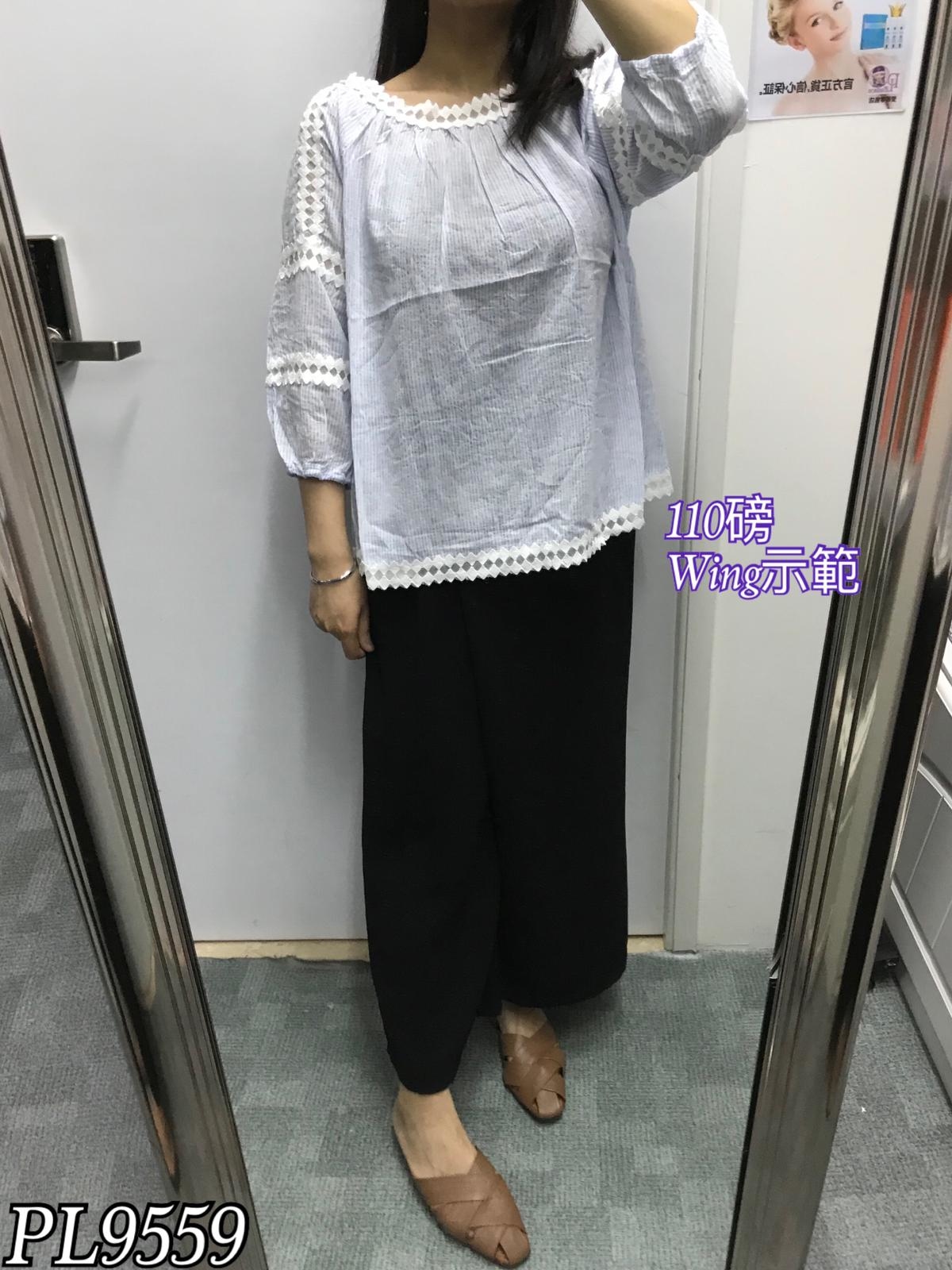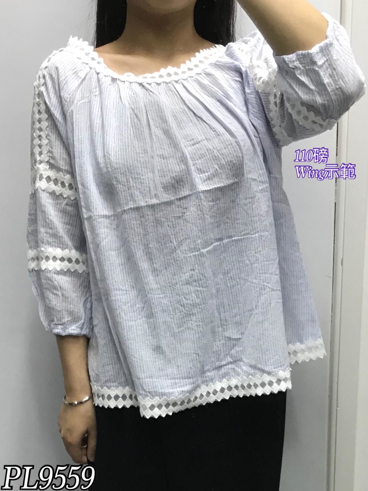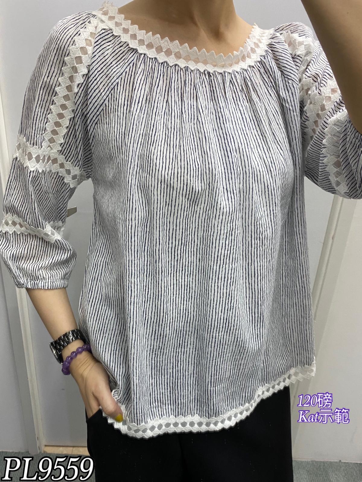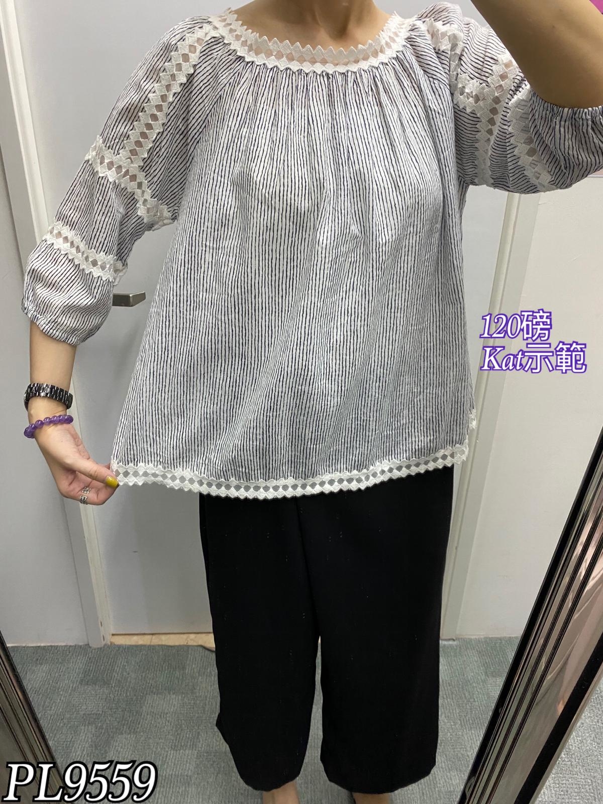 PL9559 車花邊船領上衣 #F #黑#藍 $199
