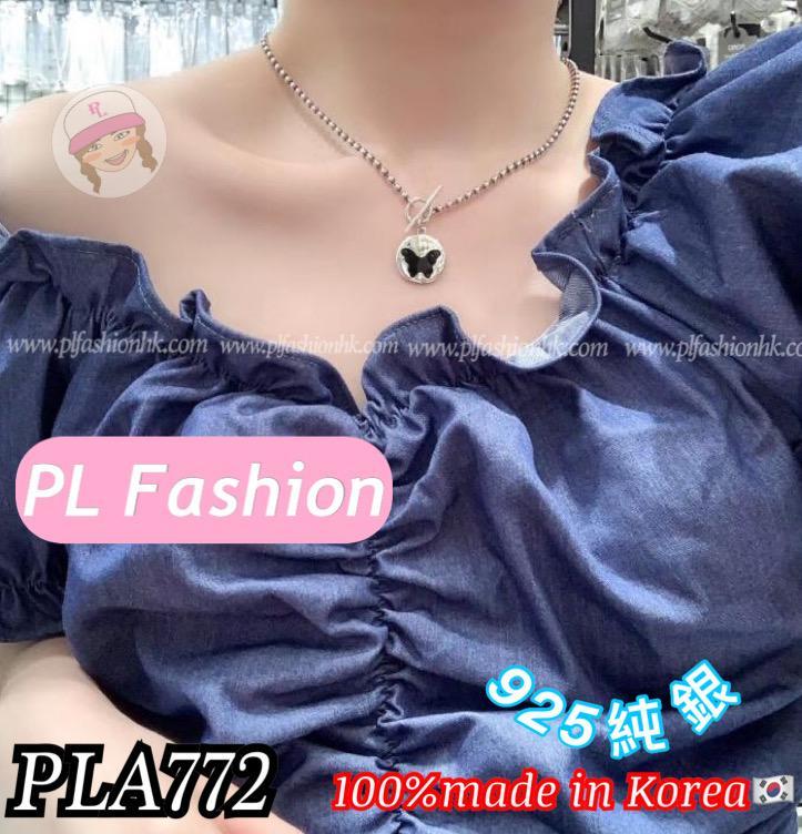 PLA772 黑蝴蝶圓牌珠珠925純銀OT扣頸鏈$399