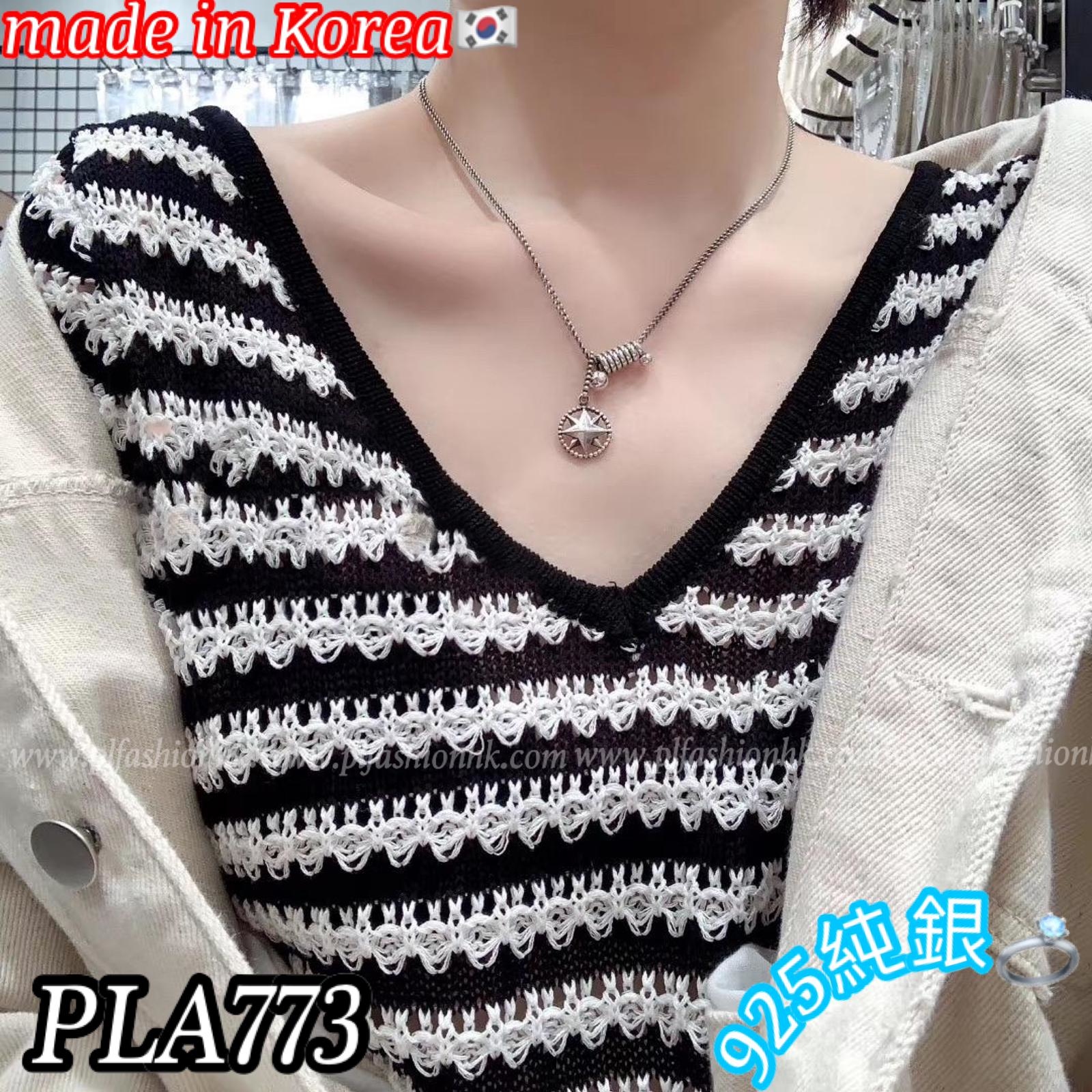 PLA773 彈黃造型光芒星925純銀頸鏈$399