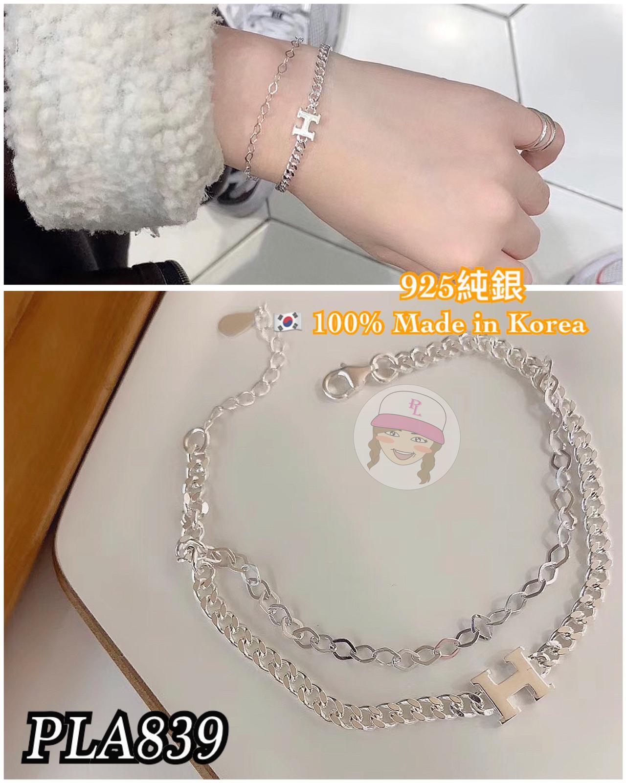 PLA839 雙層鏈H字母925純銀手鏈 $269