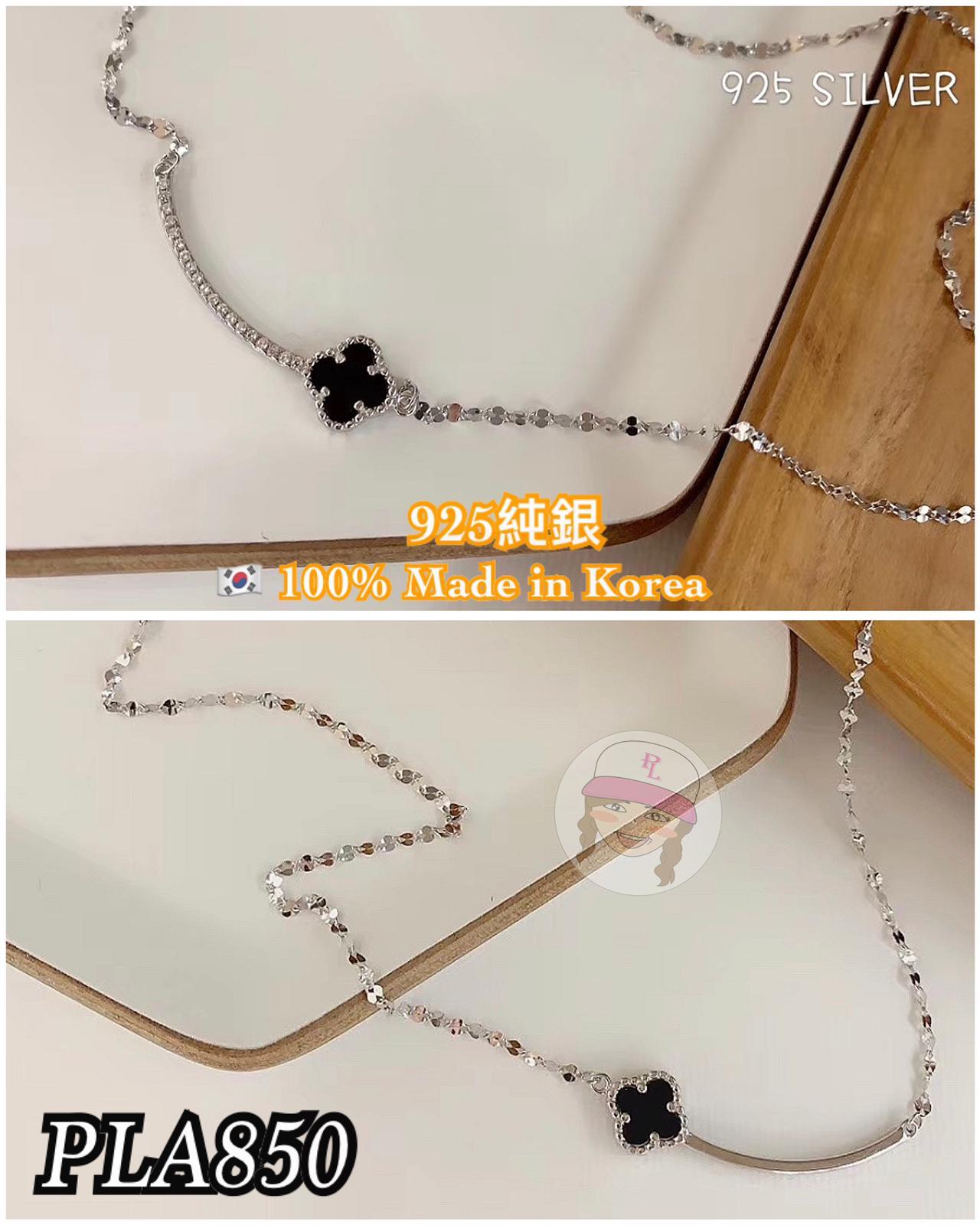 PLA850 四葉草配施華洛黑瑪瑙925純銀閃閃頸鏈 $229