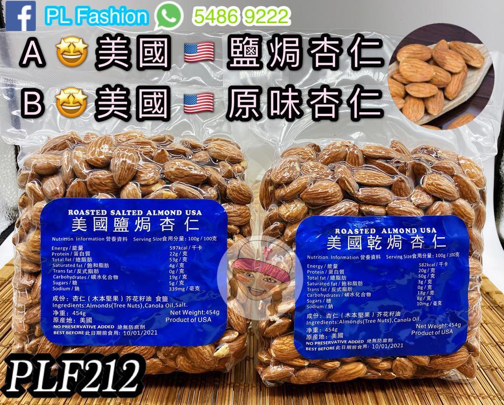 PLF212 🇺🇸美國鹽焗/原味杏仁(454g/1磅) $79/1包🚚運費到付/門市自取/無折扣